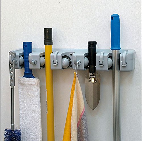 Wall Mounted Mop and Broom Holder, 5 position with 6 hooks garage storage Holds up to 11 Tools for Home, kitchen, Garden,Tools