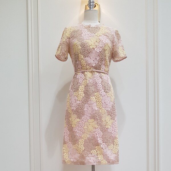 트리플컬러의 캐미컬레이스 소재가 독특한 미니멀한 라인의 원피스입니다.
