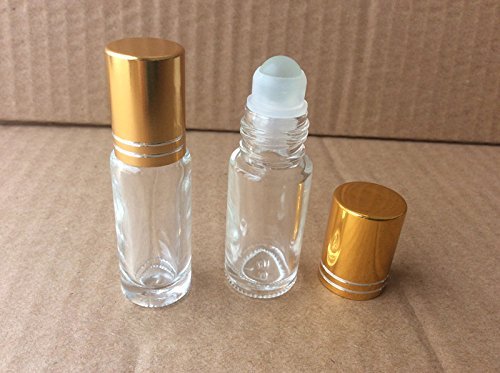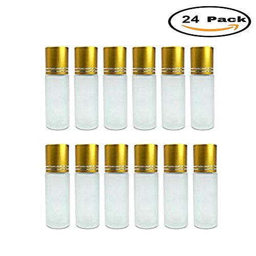 Mydio 24 Pack 5 ml Glass Essential Oil Roller Bottles and Gold Caps Perfume Roller Bottles,Set of 24