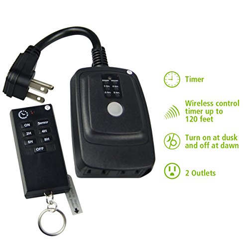 - Programmable electrical Timer plug - Turn on 2, 4, 6 or 8 hours after dusk.Christmas electronics light Timer with remote.