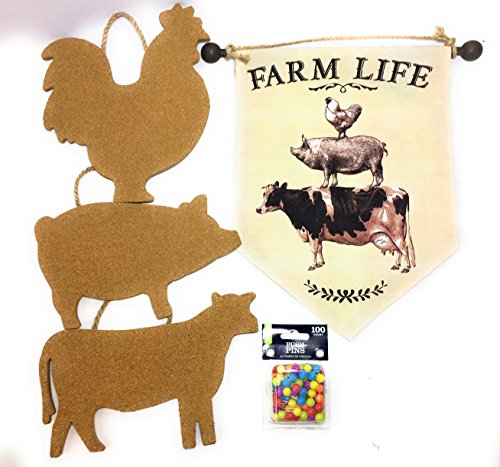 Farm Life Home Kitchen Décor Set - Cow, Pig, Chicken - Recipe Holders