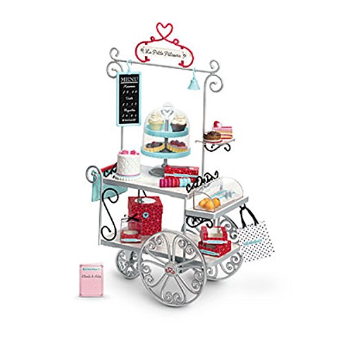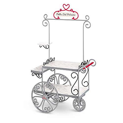 Grace’s family made this pastry cart especially for her. It has faux-marble counters, a clear pastry shelf, a covered case that opens, a push handle, and wheels that really roll.