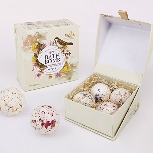 Xiujanet 4 Handmade Bath Bombs Gift Set,Birthday Gift- Floral Fragrances All Natural with Sea Salt and Essential Oils,Soften & Restore Skin -For Relaxing & Luxurious Baths