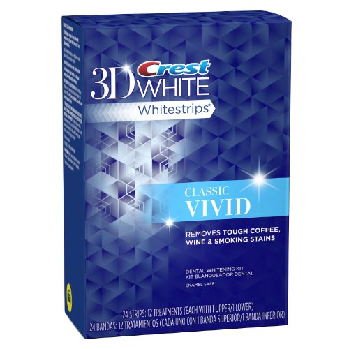-. Feature : Plastic Made in USA Removes tough coffee, wine, and smoking related teeth stains for a whiter smile Visibly whiter teeth with full results in 12 days Apply once a day for 30 minutes / Get visibly whiter teeth in just 30 minutes a day. Can you spare just 30 minutes a day for just 12 days to reverse years of staining? Of course you can. Crest 3D White Whitestrips Classic Vivid makes it easy to whiten teeth and reveal a brighter smile. Using the same enamel-safe whitening agent as dentists use, your smile will be restored to its former glory in just 12 days.