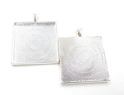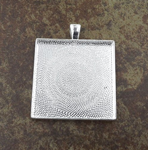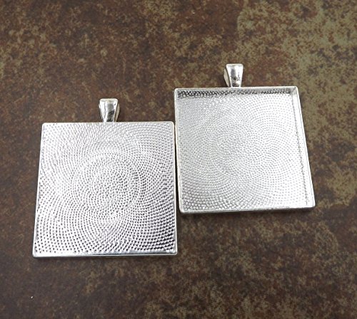 20 Deannassupplyshop Square Pendant Trays - Silver - 35mm - Pendant Blanks Cameo Bezel Settings Photo Jewelry - Custom Jewelry Making
