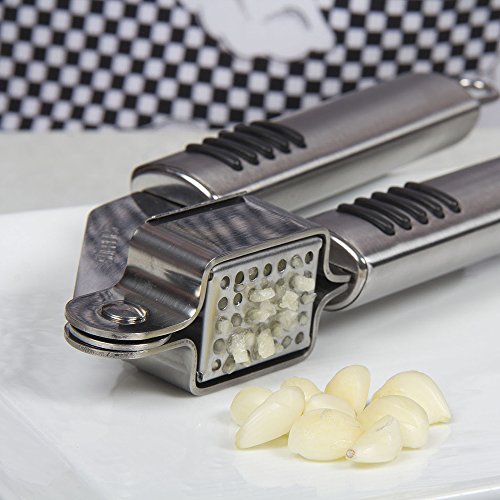 Garlic Press Stainless Steel, Strong and Easy to Use with Aluminum Handle