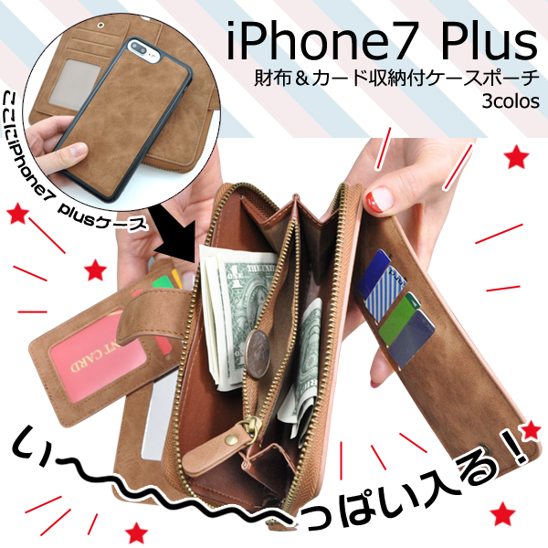 iPhone7 Plus用財布&カード収納付ケースポーチ。