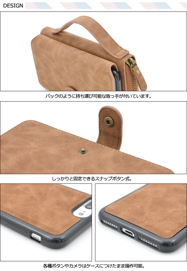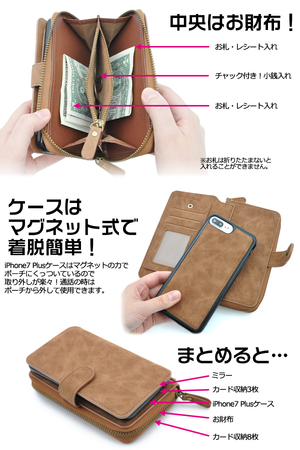 ※iPhone7 Plusケースとポーチを固定しているマグネットは完全に固定する物ではありません。 強く振り回したりするとiPhone7 Plusケースの落下の恐れがあります。※落下時の周辺機器・iPhone7 Plus本体の破損等の補償は致しかねますので、 十分ご注意ください。