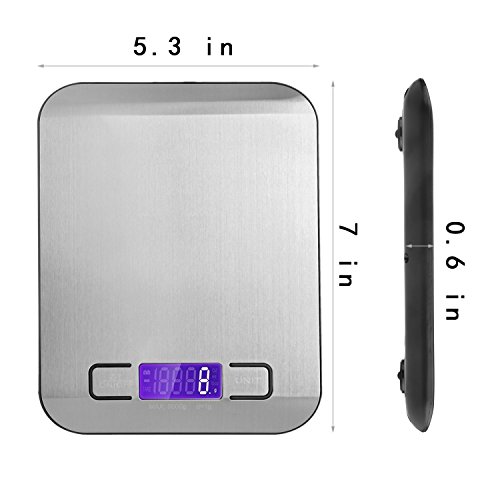 - PRECISE MEASUREMENT: Digital kitchen scale weighs up to 11 lbs. (5000 grams) in precise graduations of 0.1 oz. (1 gram).