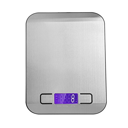 Kumeida Digital Multifunction Food Meat Scale with LCD Display, Kitchen Cooking Scale, Stainless Steel, Silver (11lb/5kg)