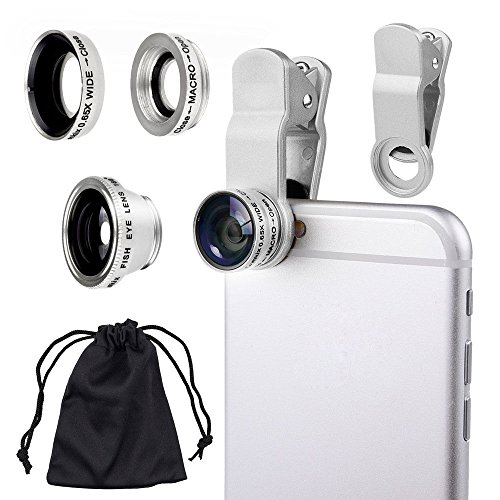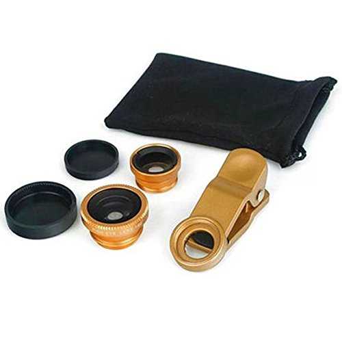 Shinefuture Universal 3 in 1 180 degree Clip Fish Eye + Wide Angle + Macro Lens Clip Camera Photo Kit For iPhone 6S 6 5S Samsung Galaxy S6 Android and All Other Smartphones (Gold)