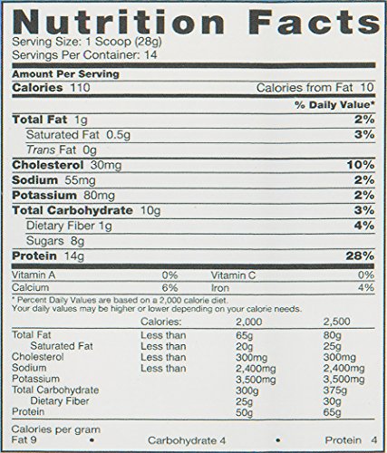 -. Feature : Supplies all the Essential Amino Acids / Boosts Performance and Energy / 14 grams of Protein in a Low 110 Calorie Shake / Rich Chocolate Flavor / Convenient 12 oz canister