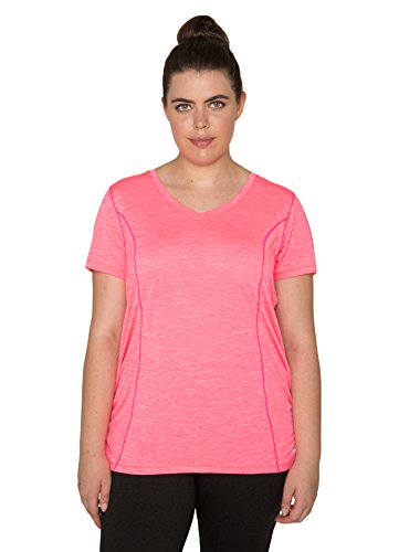 -. Feature : Women's Plus v-neck short sleeve performance tee shirt / Tagless neckline with contrast color taping prevents irritation / Shaped shilhoutte for a flattering fit / Stretch construction moves with you for a full range of motion while you work out / X Dri technology wicks sweat