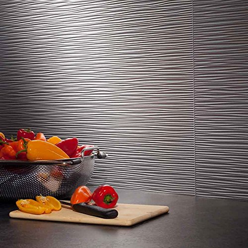 Fasade B62-09 Easy Installation Backsplash Ripple Panel for Kitchen and Bathrooms, 18" x 24", Argent Silver