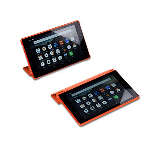 Amazon Fire HD 8 Case (2016 6th Generation) -NUYEA Ultra Slim Lightweight PU Leather Folio Case with Smart Auto Wake/Sleep for All-New Amazon Fire HD 8 (translucent case with Tangerine cover)