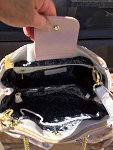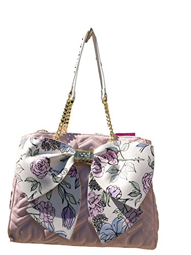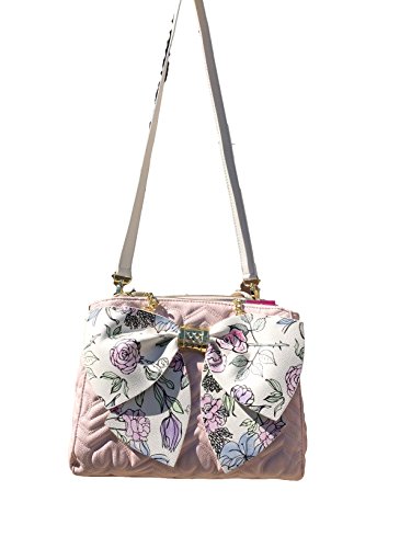 Betsey Johnson Quilted Heart Chevron Stripe Floral Print Big Bow 3 Zip Triple Entry Satchel Crossbody Bag