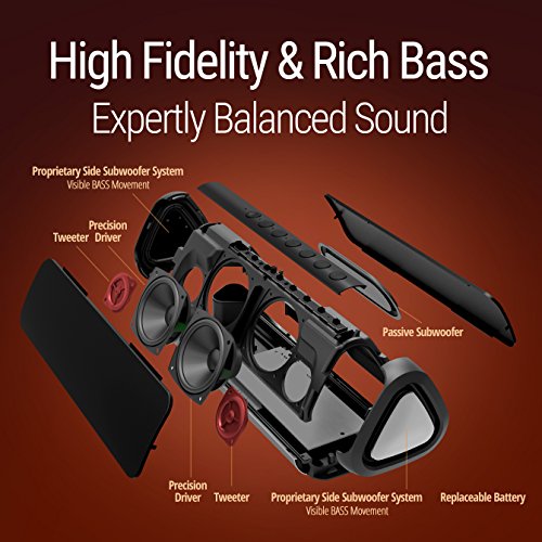 RICH BASS - The OontZ Angle 3XL Portable Speaker features 3 passive Subwoofers for deep rich bass; 1- rear facing and 2- side facing which you can see move to the pulsing Bass