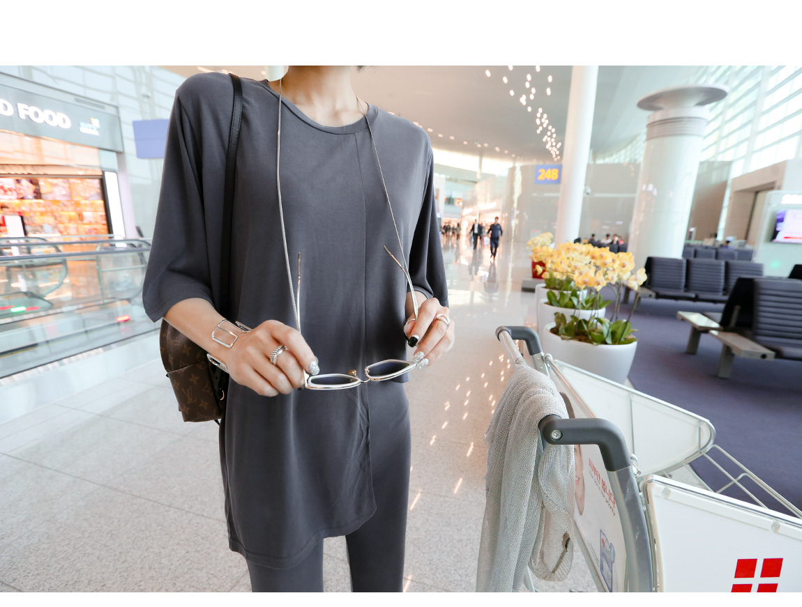 腰に落ちるキジャンガムがクロップティーを着用したような