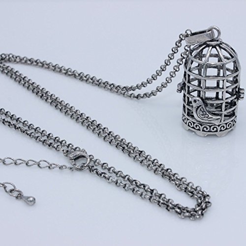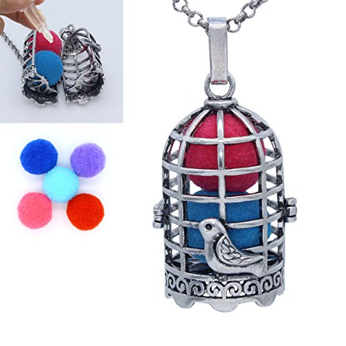Antique Silver Hollow Large Big Bird Cage Locket Necklace Aromatherapy Essential Oil Diffuser Jewelry