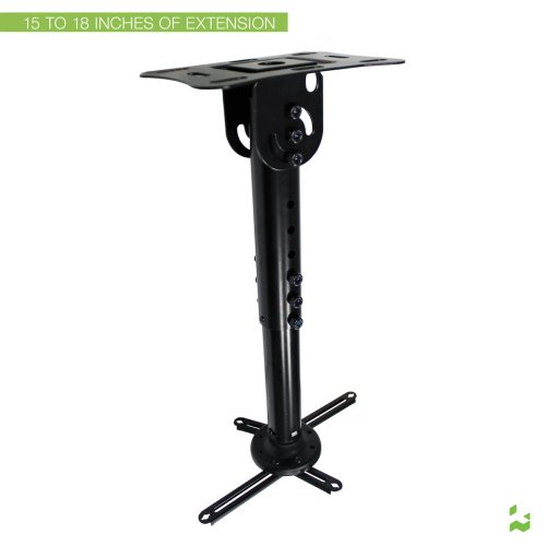 - Feature : Mounts projector 15-Inch to 18-Inch (27 to 45 cm) from ceiling / Tilts 90 degrees to mount to sloped ceilings and beams / Ball swivel allows for 360 degree rotation / Holds up to 22 lbs (10kg) / Spring lock allows easy attachment and removal