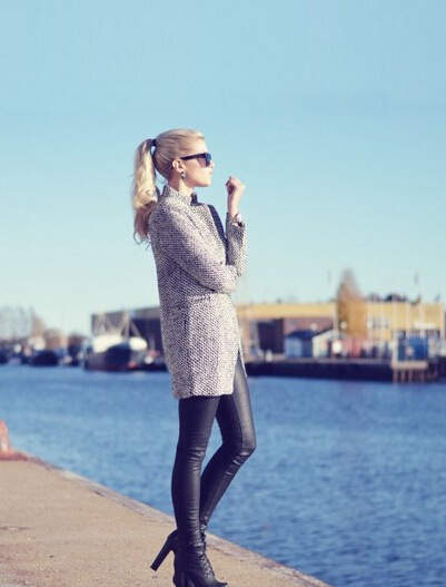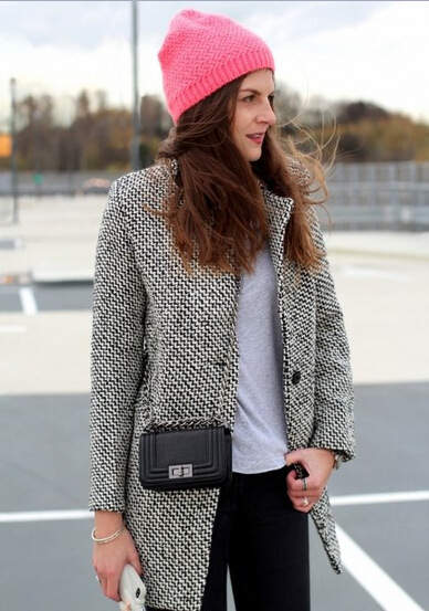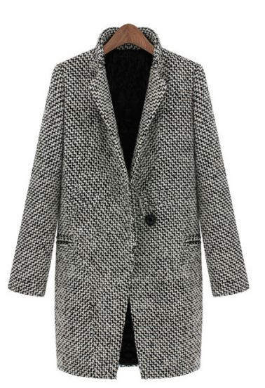 トレンド シンプル モノクロ ツイード柄 カジュアル ミディアム スタイリッシュ 秋冬 上品 エレガント S M L XL 2XL 3XL