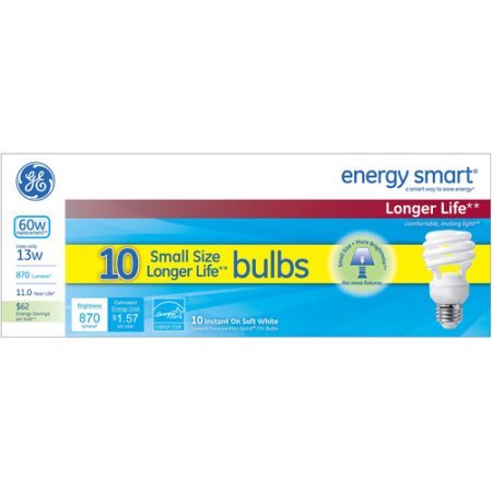 GE Energy Smart 13W CFL Soft White Spiral Bulbs-(10 Pack), Model: 70909