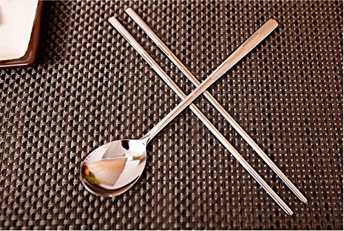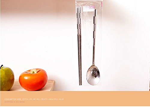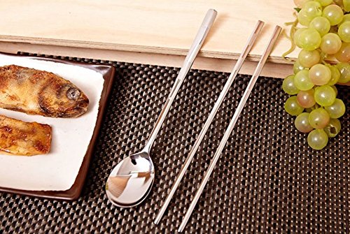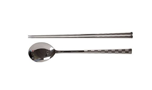 Every day Korean Stainless Steel Spoons and Chopsticks Set Square Pattern
