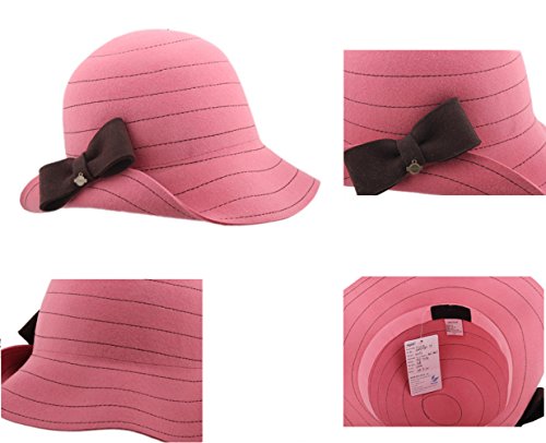 (Arsmt)/Accessories/Hats/DIRECT FROM USA/Arsmt Fedora Hat Brim Winter Bowler Derby Vintage Floppy Striped Bow Knot Wool Hat