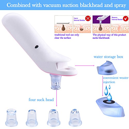 - 4 different size vacuum treatment heads, suitable for different kinds of the skins, also sensitive skin. 3 levels speed control, then you can adjust the intensity according the severity of the blackhead.
