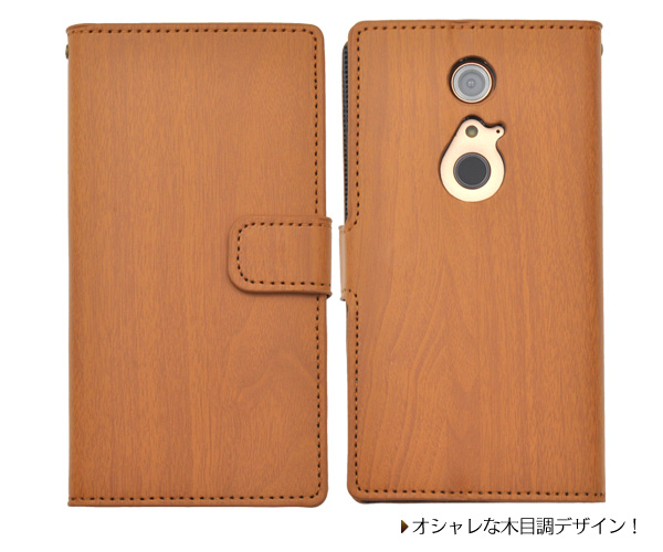 木目調の ARROWS NX F-05F用スタンドケースポーチ。