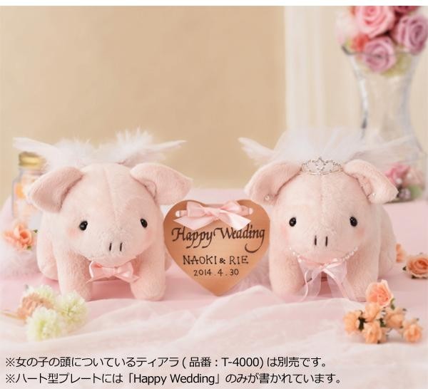 | 愛らしい表情の子ブタのウェルカムマスコットです。ハート型のプレートには2人の名前やメッセージを書き込むことができます。1つ1つ心を込めた手づくりのものをお届け。特別な日を素敵に演出します♪ |