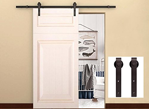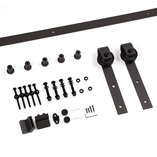 Unionline American Style 6.6 Ft Sliding Wood Barn Door Steel Hardware Dark Brown Sliding Track Kit Basic J Style