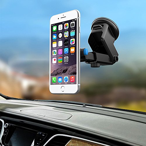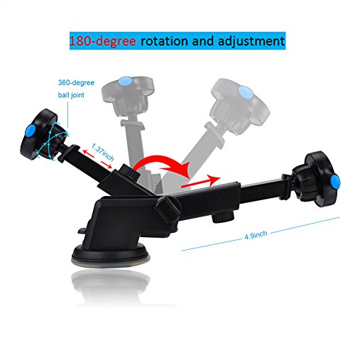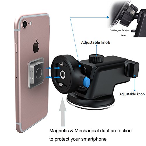-. Feature : Magnetic and Mechanical dual protection to lock smartphone / Extra strong suction cup with sticky gel pad sticks securely to windshield, dashboard or other smooth flat surfaces, and is easily removable. Put the holder on the surface and press the lever down to make the device sticked. The gel pad can be restored to its mint condition by rinsing it with warm water and letting it air dry / Three Way Adjustable Design: Telescopic arm, 360-degree joint ball rotation and 210-degree arm rotation can provide a variety of viewing angles and optimal viewing capabilities for a more relaxed and safer drive / One Hand Operation: Designed for simple operation, effortless convenience, insert or remove your phone with one hand, press the blue release button on the holder then remove your phone / Fit for most cellphones, including iPhone 7 7 Plus 6s Plus, 6s, 5s, 5c ,Samsung Galaxy S6, HTC, LG, Nexus, Nokia, GPS Device, etc.
