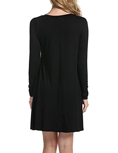 -. Feature : Hand wash cold / Design: Long sleeved, Round neck, Plain color, Jersey knit, Above knee length, Flowy, Loose fit, Simple style / Long sleeve shift dress featuring solid color with soft and stretchy fabric for comfort / This casual t-shirt dress is great for all seasons. Basic design for dressing up or down with heels, boots, jewelry, belt, scarf, jacket, etc. / Please check product description for measurements before ordering