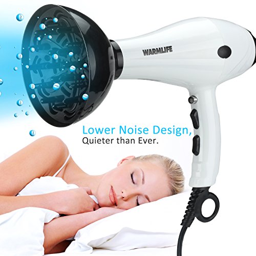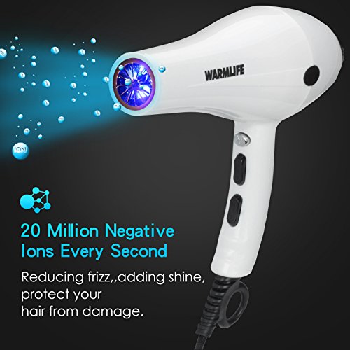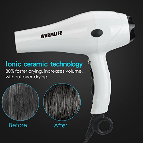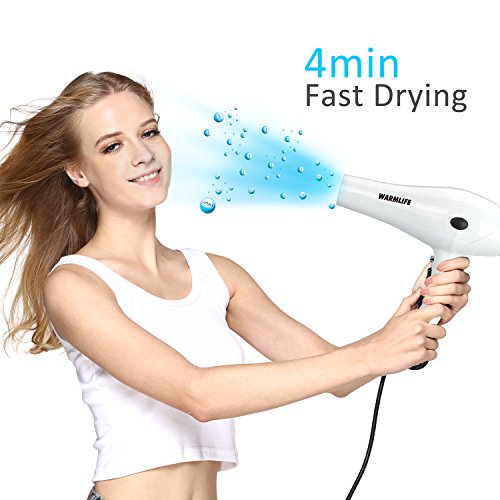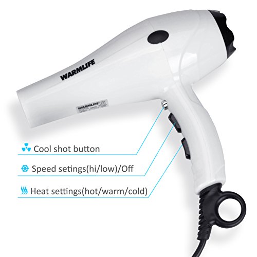 Warmlife 2000W Hair Dryer Professional Salon Powerful Ionic Hair Blow Dryer AC Motor Styling Tool -2 Speeds 3 Heat Settings Cool Shot Button (1875W White)