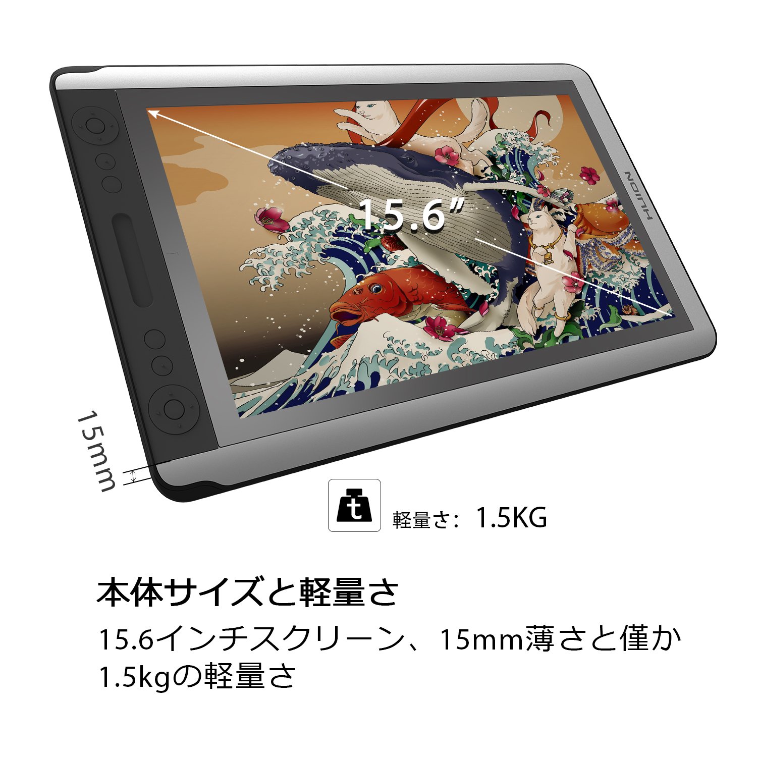 15.6 inches FULL HD Unsupported body with no IPS screen, work area size is the largest in the industry's 15.6 inch LCD tablet.