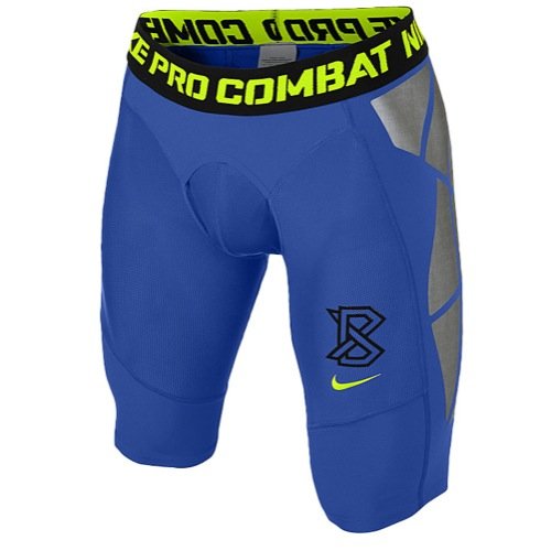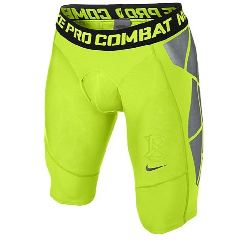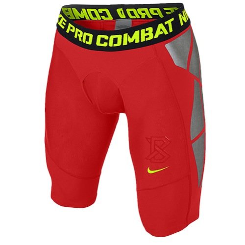 Features: Printed Nike Pro Combat elastic waistband for a snug fit Silver sliding panels help reduce friction on every slide Dri-Fit to help keep you dry and comfortable Textured laminates at thigh and above knee to protect against friction when sliding Compression fit for a secure, locked-in feel Flat seams move smoothly against your skin to reduce chafing Breathable mesh and a lock-down cup pocket for secured comfort Fabric: 89% Nylon 11% Spandex 0