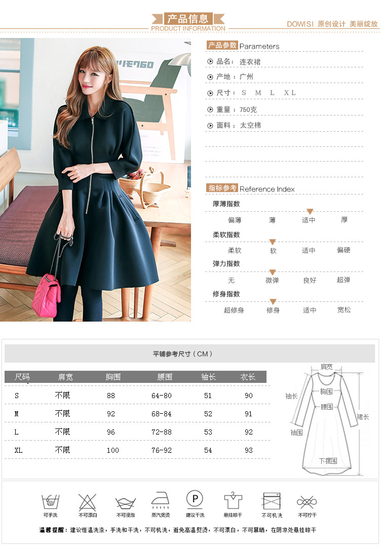 S:バスト88 ウエスト64-80 袖丈51 着丈 90