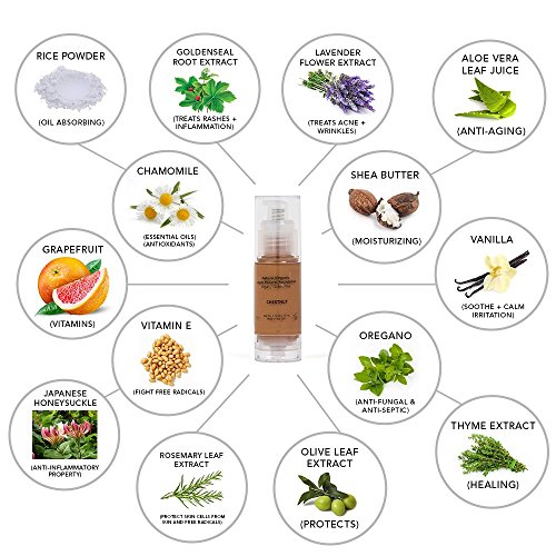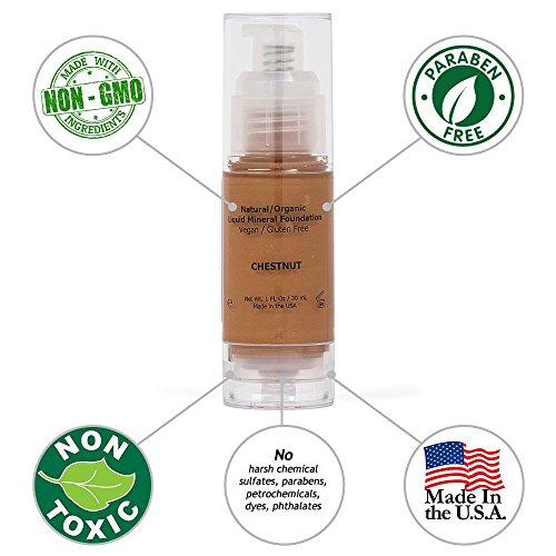 -. Title : Liquid Mineral Foundation Makeup - Aloe Vera Based, All Natural, 90% Organic, Vegan, Gluten Free, No Animal Cruelty, Oil Free, No Toxic Chemicals, Non Irritating, Safe for Sensitive Skin