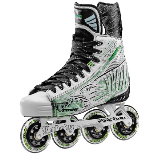 Studio : Tour Publisher : Tour Product Description Part of the Ultimate Pro Level Series, the Tour™ Fish BoneLite Pro inline hockey skates deliver improved fit and comfort. The Labeda™ Hum'er Eviction frame features a Surlon® structural unit for reduced weight and enhanced support; instep honeycomb vents and an Aire-Control lining manage moisture and keep cool breezes flowing. The graphite torque-control sole is set up with Bevo Gold 9 bearings and Labeda™ Addiction wheels. 0