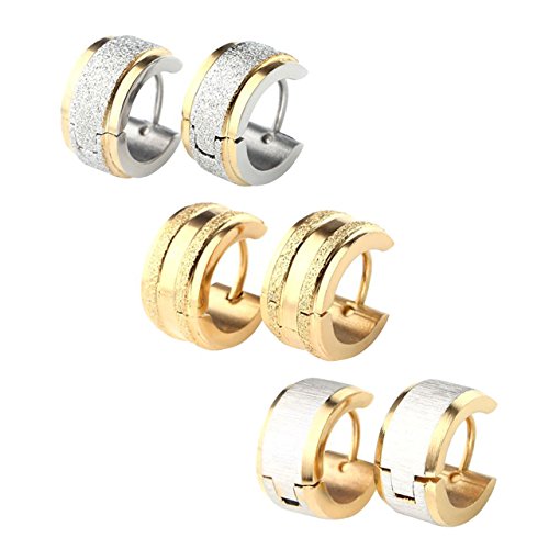 -. Title : Jovivi Mak ジュエリー ファッションアクセサリー メンズ レディース ステンレス スクラブ スムース 7MM リング フープ 3ペアセット 両耳用 ピアス イヤリング カラー シルバー ゴールド ギフトバッグを提供