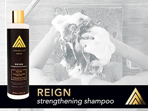 Reign Shampoo provides the head with the perfect combination of fine ingredients to keep your scalp healthy and hair follicles nourished. This sulfate free, organic shampoo is the ultimate hair loss and hair thinning treatment. The secret lies in the premium, all-natural ingredients sourced from the Amazon Rainforest. Unique ingredients like Açai Oil, Vitamin E, Green Tea, Argan Oil and Aloe Leaf work synergistically to promote thicker hair and repairing damaged hair follicles. You'll notice a stronger, more full head of hair just after a couple uses of this premium shampoo. Plus, it smells great too! Each shower will leave you with a refreshing scent of Bergamot, Cedar and Cypress. This is the perfect organic shampoo for anyone looking to keep their head healthy and hair strong. Use Amazology Drench Conditioner with Reign Shampoo for best results.Feature