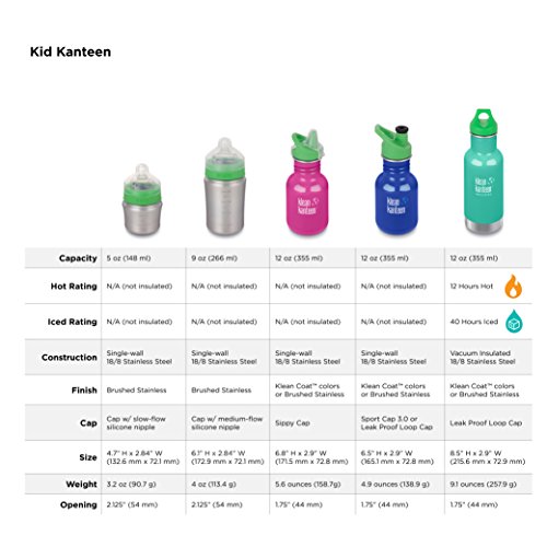 The Klean Kanteen Vacuum Insulated Kid Classic 12oz water bottle combines the original, iconic, Classic bottle with high-performance, double-wall vacuum insulation to create a highly versatile bottle. Klean CoatTM powder coat finish is 4X more durable, chip-resistant and safe for people and planet. The 12oz Insulated Kid Classic water bottle was designed with high performance in mind, keeping beverages hot for 12 hours and iced for 40 hours. Small enough to fit is kids hands and backpacks for on the go hydration. Crafted from high quality, durable food grade 18/8 stainless steel with a wide 1.75 inch (44mm) opening fits ice, is easy to fill, pour and drink from. Electropolished interior and rounded corners make the Vacuum Insulated Kid Classic 12oz bottle easy to clean and maintain. All Klean Kanteen products are made using safe healthy materials and backed by the Strong as Steel Guarantee. Hand washing recommended.Feature