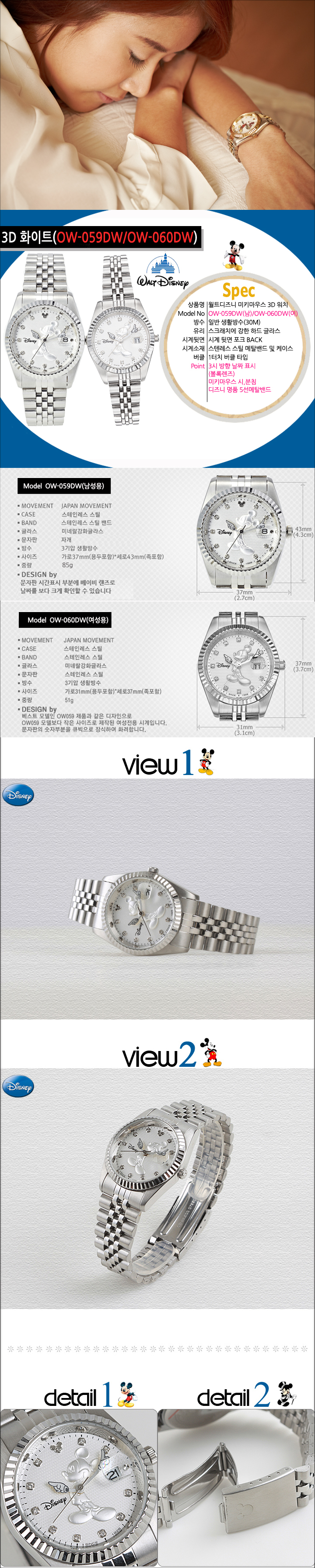 [WALT DISNEY] Rorex Style Wristwatch OW-059DW/060DW By Walt Disney