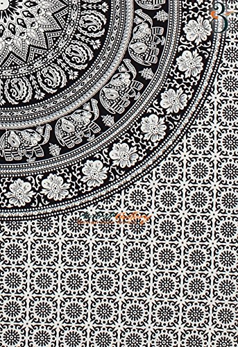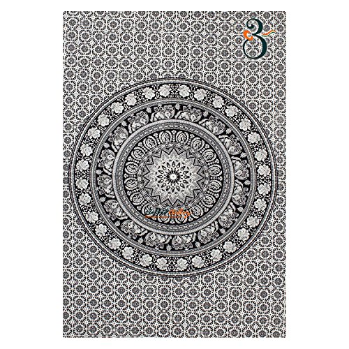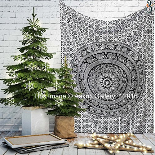 Black and White Twin Tapestry Hippie Wall Hanging Art Decor Single Mandala Tapestry Hippie Dorm 84X55 inches by Aakriti Gallery (Black White)