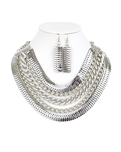 -. Binding : Jewelry -. Brand : iconic luxe -. Department : womens -. Feature : Necklace features three link chains and two snake chains attached to a bar. It also has a lobster clasp closure and adjustable chain. Earrings feature dangling snake chain and french wire hook. / Designed in USA / 2 Piece Set - Necklace and Earings / Imported -. Label : Sharona -. Manufacturer : Sharona -. ProductGroup : Jewelry -. ProductTypeName : FASHIONOTHER -. Publisher : Sharona -. Studio : Sharona -. Title : Mallory Five Strand Combination Statement Necklace and Earrings Set