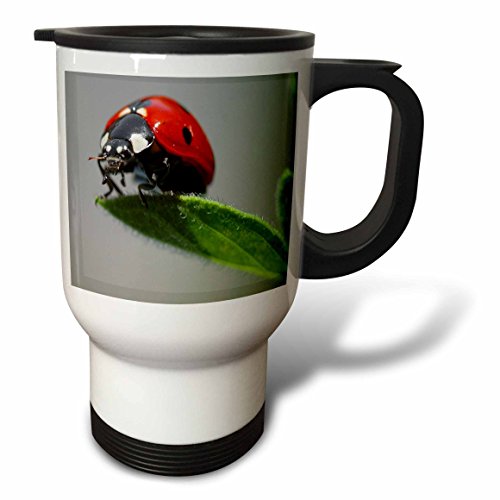 3dRose tm_62380_1 Ladybug Up Real Close Stainless Steel Travel Mug, 14 oz, White
