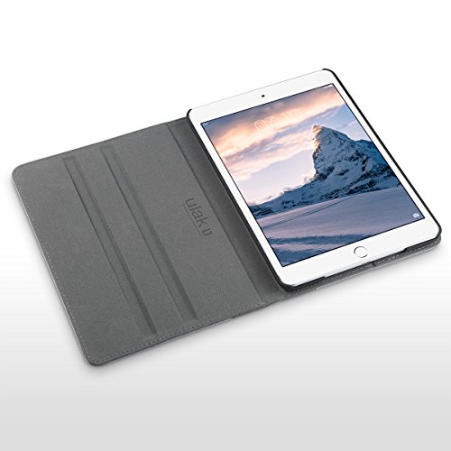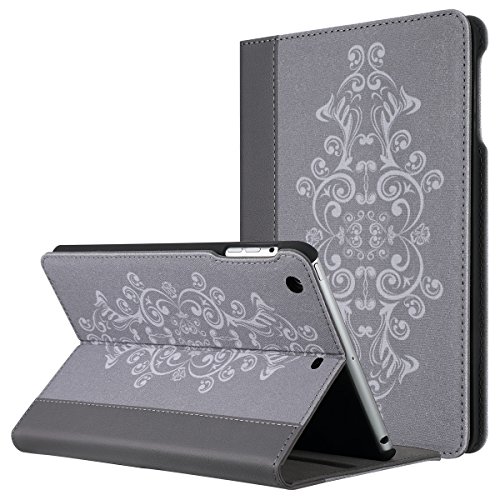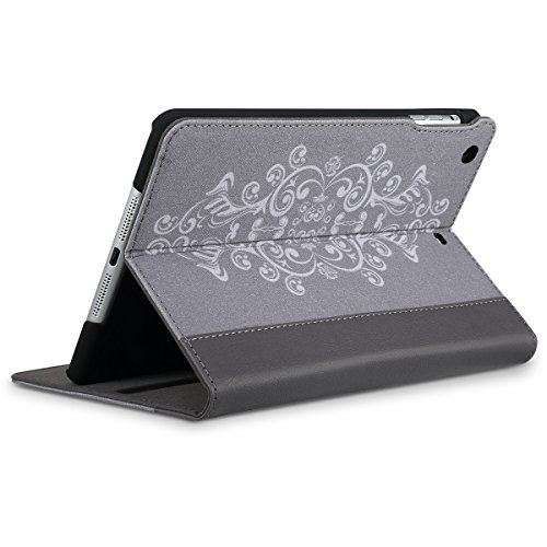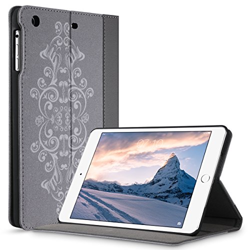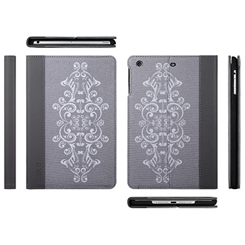 iPad Mini 2 Case,iPad Mini Case,iPad mini 3 Case,ULAK Folio Synthetic Leather & Handmade Canvas Stand Case Smart Cover for Apple iPad Mini 1/2/3 with Auto Sleep/Wake Function (Grey+Black)