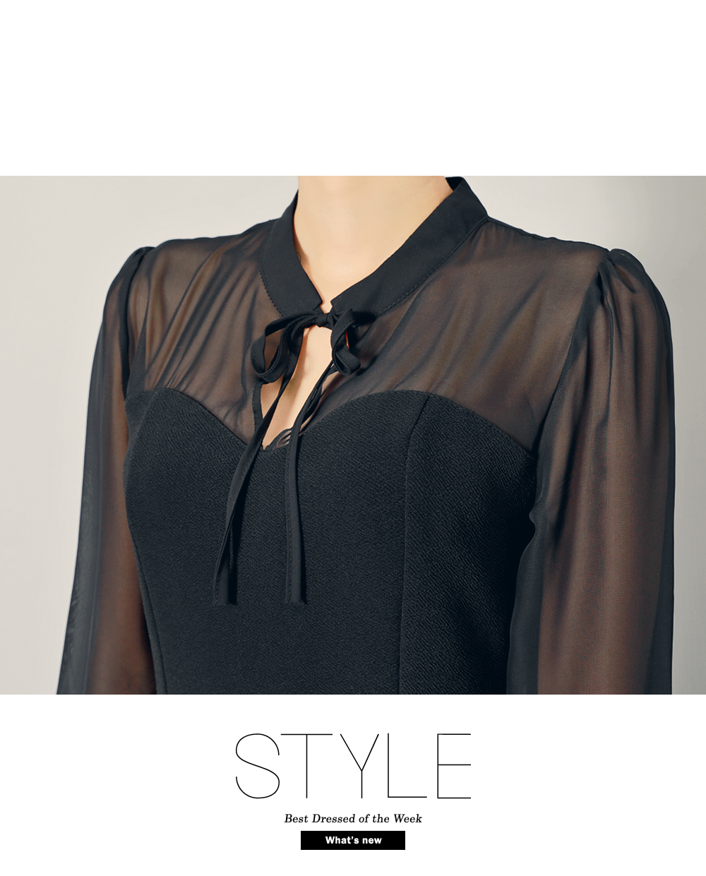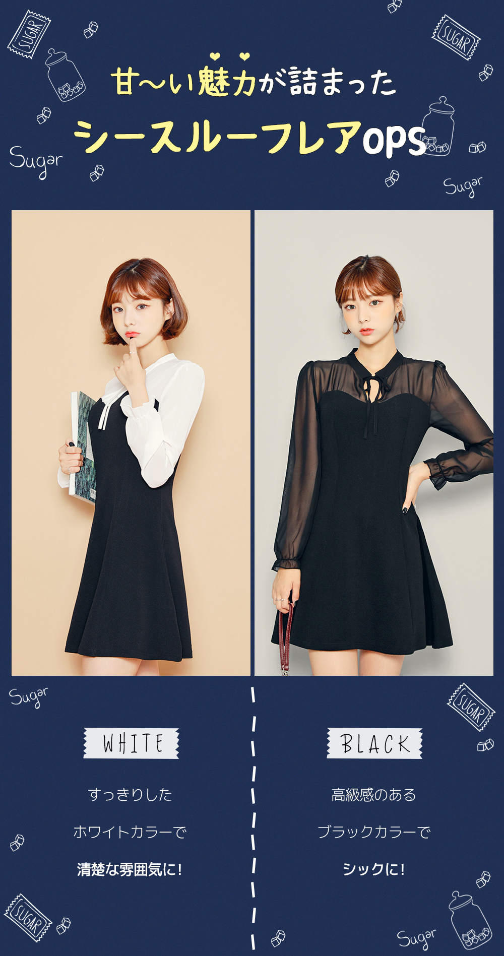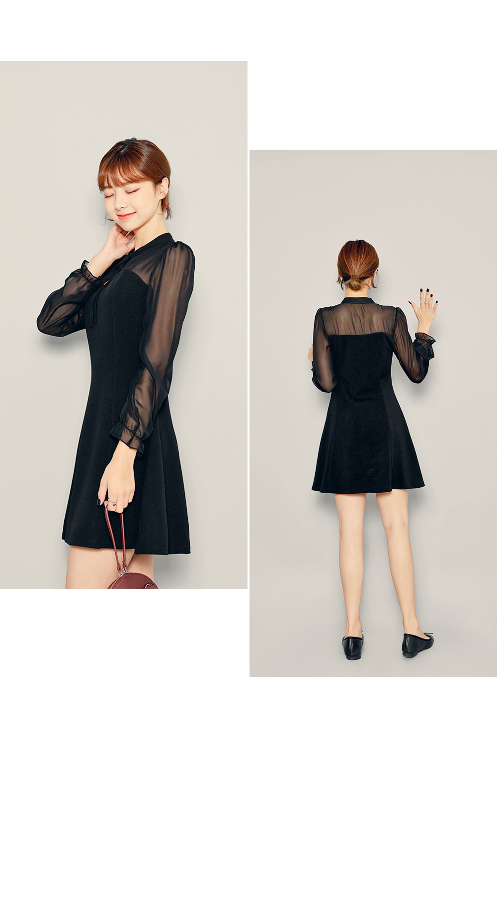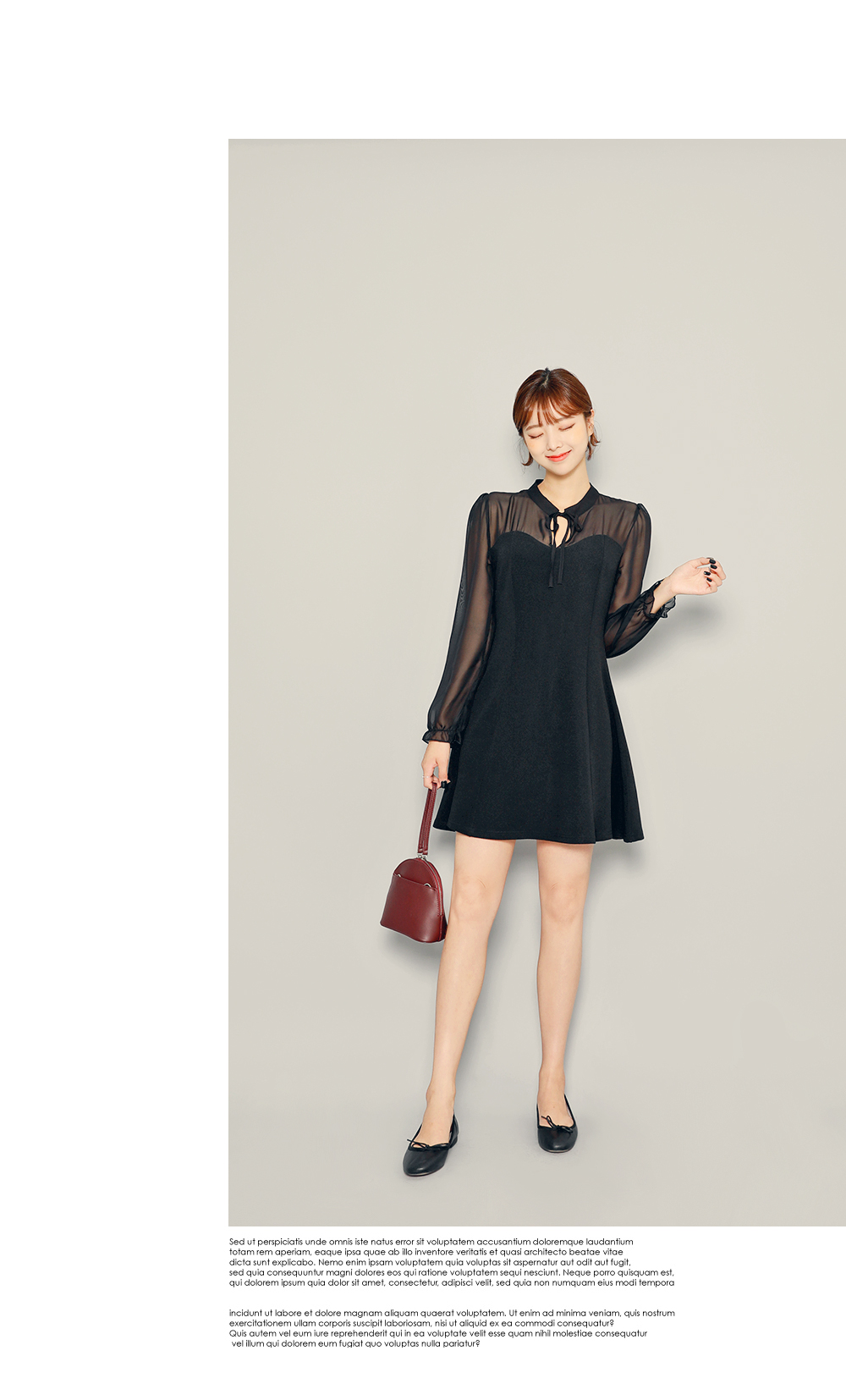 首元から袖までのシースルーデザインが魅力的な一枚です。ウエストから広がるスカートラインで、くびれ効果も◎首元のリボンと、袖口のラッフルディテールで、女性らしい印象に。ラブリーさと、セクシーさを兼ね備えた、女性らしさをアピールできるアイテム♡特別な日にピッタリな高級感溢れる一枚です。