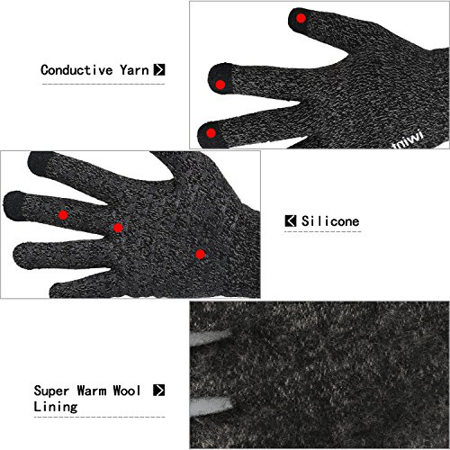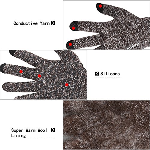 This gloves is made of High Quality Acrylic Material with super soft and warm Wool lined, Build a simple and plain Knit Construction style; Surface of the Palm Fingers are filled with Silicone dots pattern lead to high Anti-Slip performance, they can help you better grip things, such as holding a cell phone and holding the steering wheel; The Unique and Practical Touchscreen Fingers Capability design, very Convenient and Great for Texting/Typing/Writing in cold winter; Comfortable and high quality gloves material with excellent elasticity, Stretches to fit most hands, You can easily get a custom fit according to your hands. Pair off with your favorite Outfit. It's an excellent choice for Gifts or Your Own Dressing. Buy more for your friends and family.